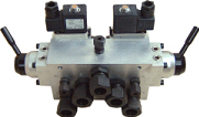 1、電磁換向閥 2、電磁換向閥手動旋鈕 3、手動轉(zhuǎn)閥1 4、集成塊 注:圖示 P-接至壓力氣源 A、B-接至工作腔 a1、a2、a3-接至壓力測量儀表(或用堵頭堵住)