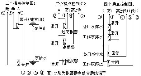 2)、二個(gè)報(bào)警信號(hào):接點(diǎn)為常開,位置出廠設(shè)置在最高和最低位置;三個(gè)報(bào)警信號(hào):均為常開,高2設(shè)在 50%,四個(gè)報(bào)警信號(hào):高1高2為常開、低11低12為常閉,高2設(shè)在85%、低12設(shè)在15%,接線端見下圖,若有不同要求請(qǐng)說(shuō)明,報(bào)警位置用戶也可自行調(diào)整。