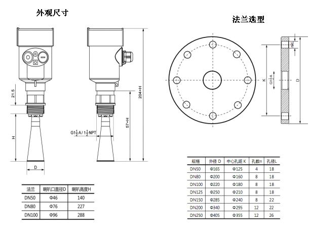 四、外觀(guān)尺寸及法蘭選型: